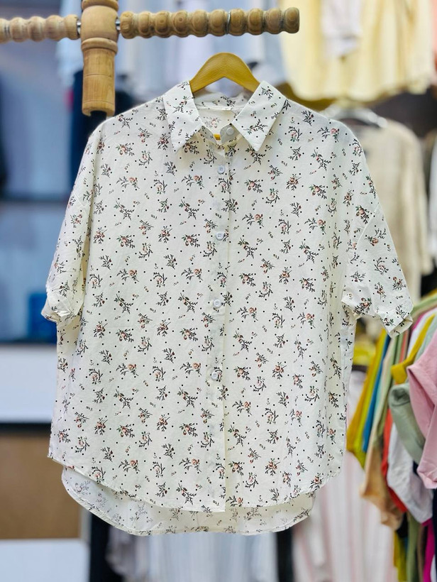 شومیز کتان آستین کوتاه زنانه